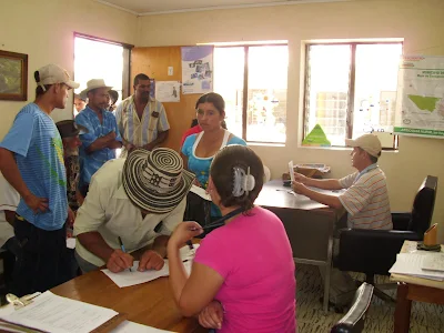 LOS CAMPESINOS EN EL BANCO AGRARIO RECIBIENDO EL PRIMER PAGO DEL PROGRAMA FAMILIAS GUARDA BOSQUES